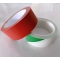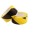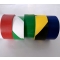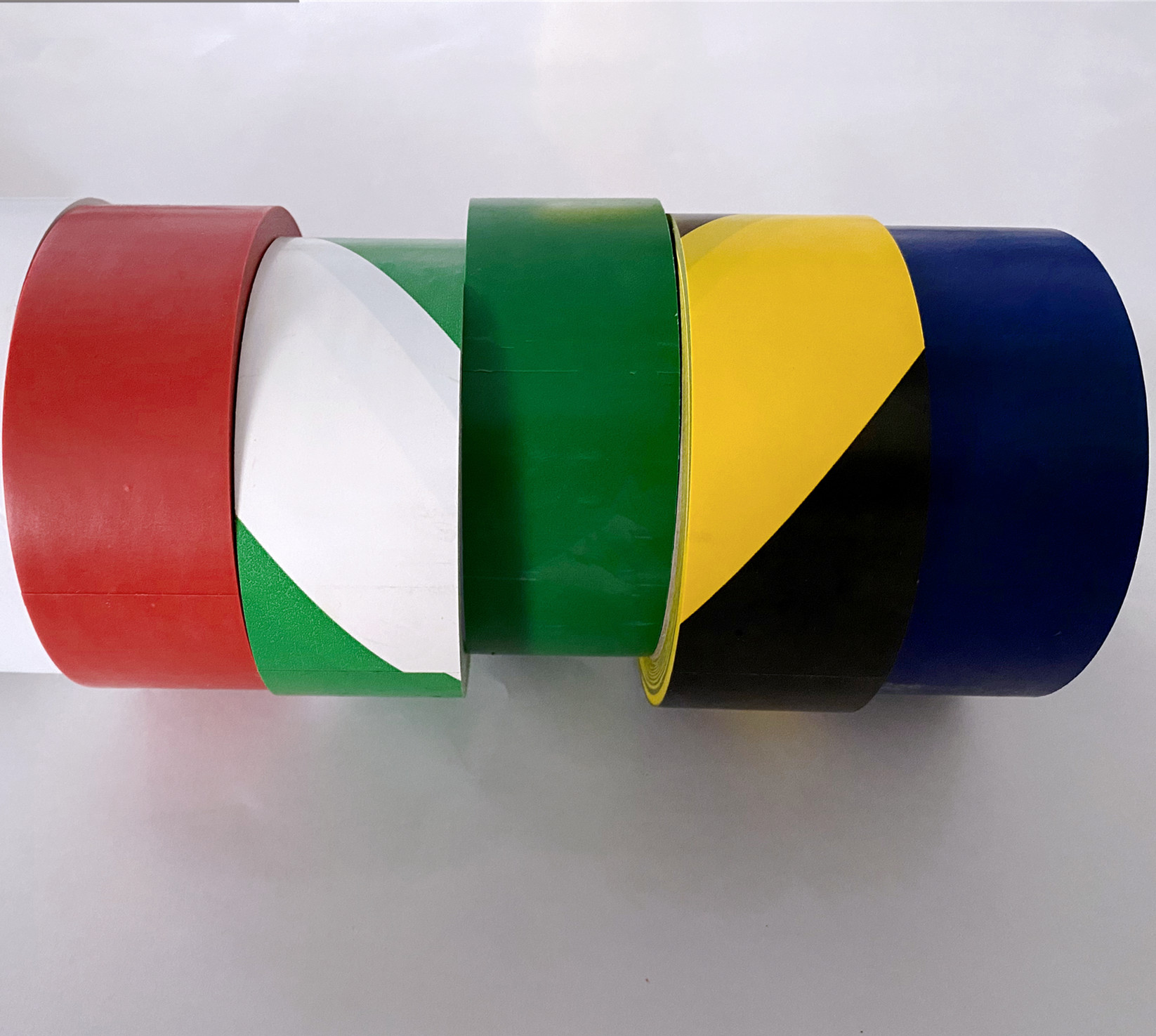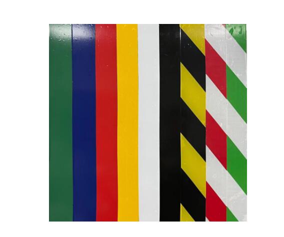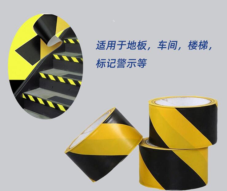 地板膠帶是以聚氯乙烯(PVC)薄膜為基材,使用橡膠型壓敏膠制造而成。有黑黃相間,紅白相間,綠白相間,純黃,純紅,純綠,綠黑等不同顏色搭配。