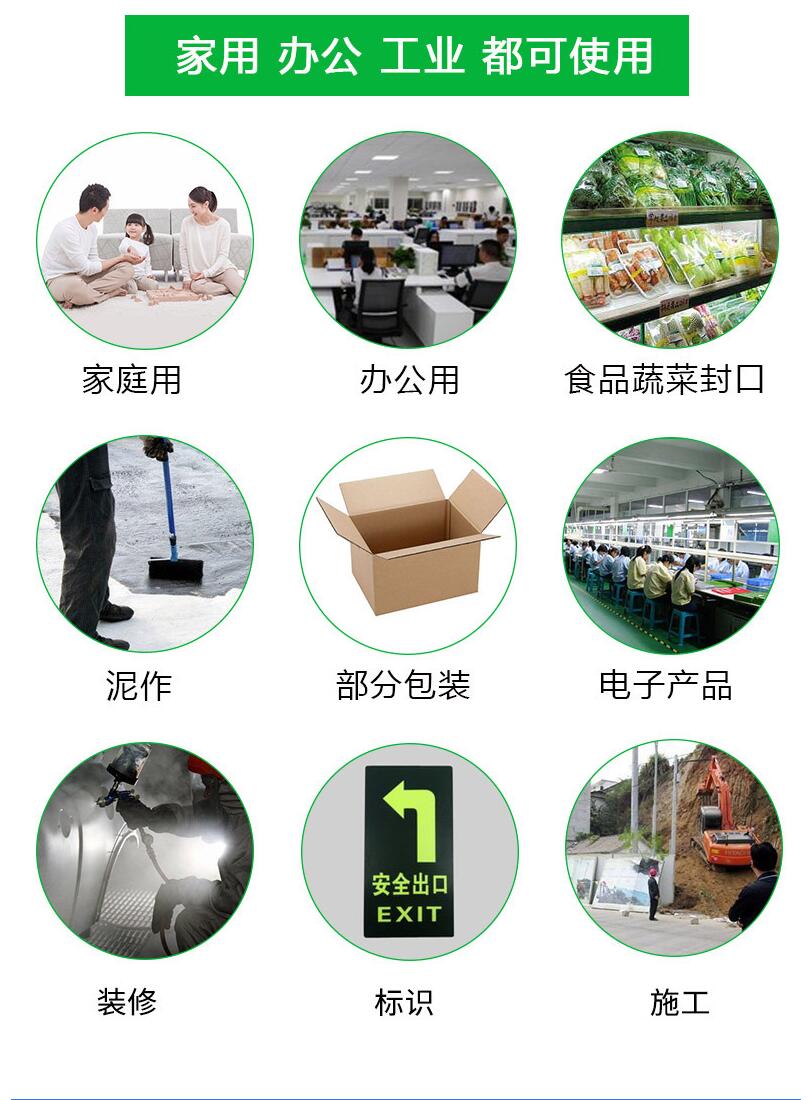 噴刷涂料時遮蔽保護提高工作效率。可使用于搬運貴重物品時的保護和固定。對重物固定表現 尤佳。也可適用于包裝和部分電子行業,不需任何工具,便可以輕松撕開。各種顏色可按照客戶規格分切。