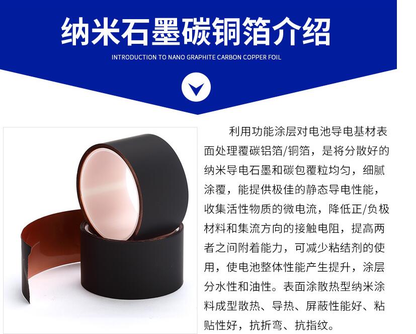 納米碳銅箔散熱膜是納米碳先進的復合材料,具有高導熱性和高的靈活性。采用納米碳材料均勻涂布于銅金屬基材,由高導熱效能進行熱傳導,再藉由碳原子高熱輻射效能,將熱能轉換為紅外線射頻,傳遞散熱效能。具有高導熱性和熱輻射效率高。更改熱紅外射頻,通信冷卻效率。